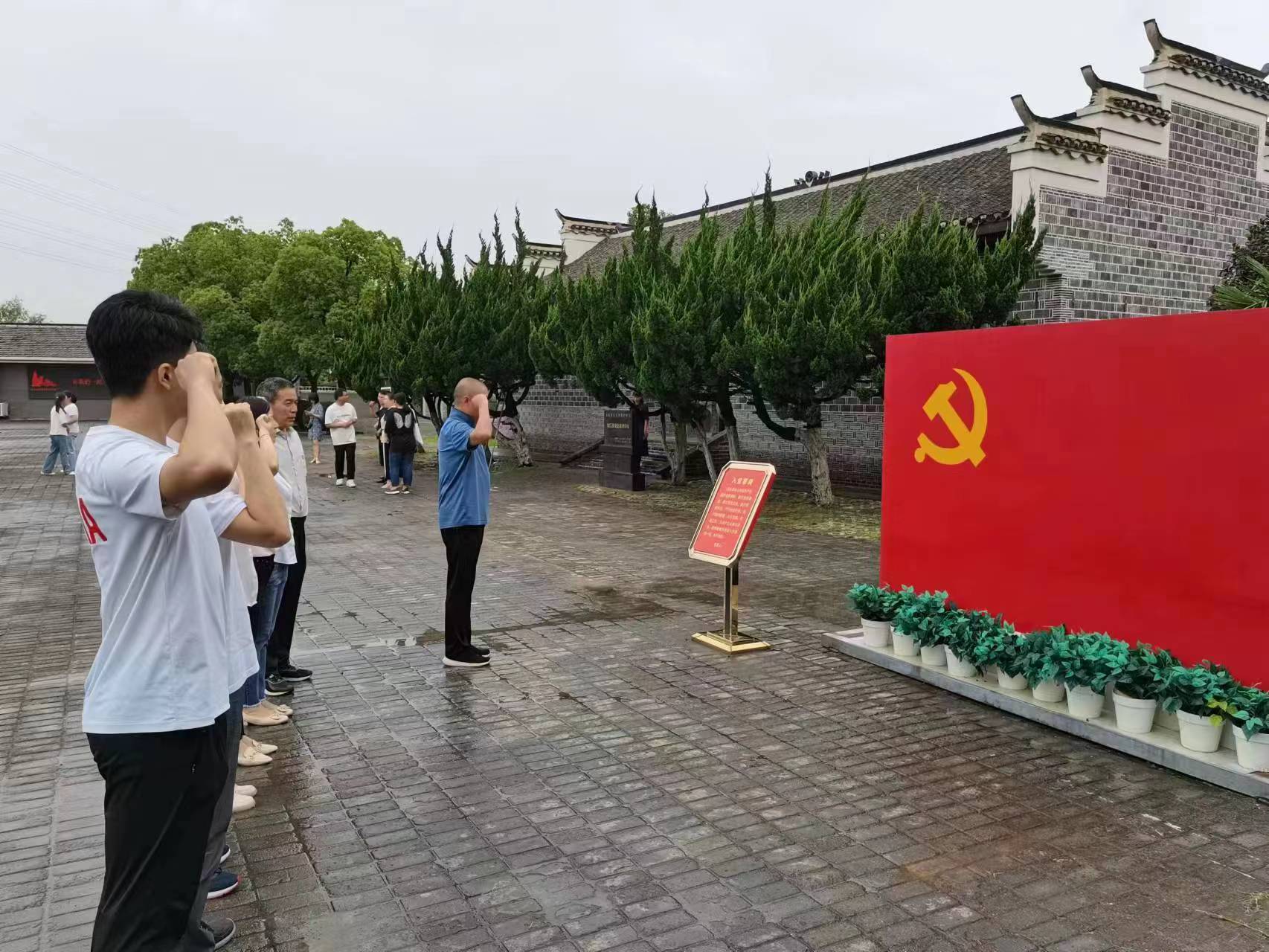 在渡江戰(zhàn)役總前委參謀處舊址廣場上,全體黨員重溫了入黨誓詞,面向鮮紅的中國共產(chǎn)黨黨旗,支部書記領(lǐng)誓,其他同志高舉右拳,鄭重宣誓,誓言聲鏗鏘有力,句句入心。