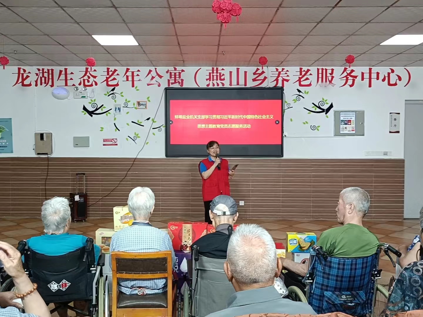 為深入推進學習貫徹習近平新時代中國特色社會主義思想主題教育,傳承和弘揚中華民族尊老敬老的傳統(tǒng)美德,營造愛老助老的良好社會氛圍,7月29日上午,蚌埠市鹽業(yè)公司機關黨支部組織黨員志愿者到龍湖生態(tài)老年公寓開展主題教育黨員志愿服務活動。