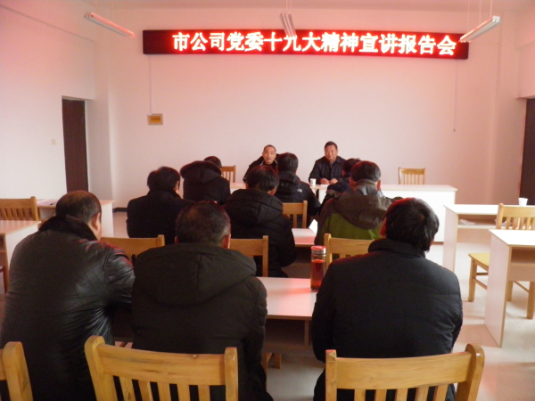 近日,蚌埠市公司黨委委員、副經(jīng)理吳澤星同志到固鎮(zhèn)公司宣傳貫徹十九大精神,全體在崗黨員參加了報告會。