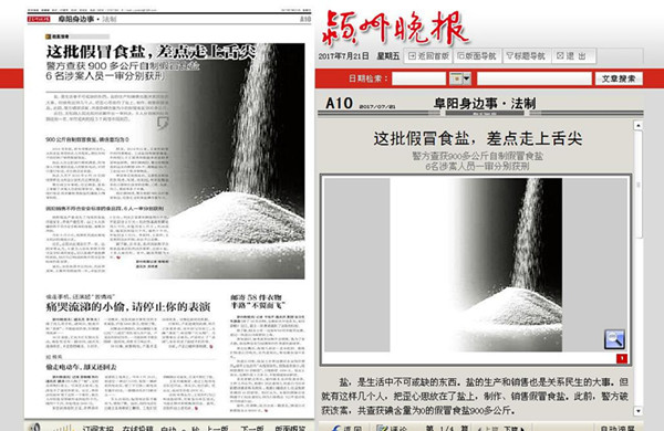 《潁州晚報(bào)》:這批假冒食鹽,差點(diǎn)走上舌尖——警方查獲900多公斤自制假冒食鹽 6名涉案人員一審分別獲刑