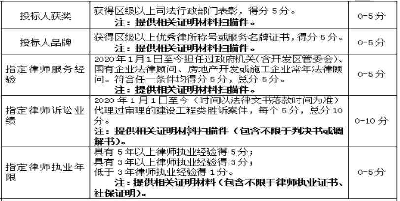 3、響應文件第三項原為“建設工程類似案件經(jīng)辦情況說明”,現(xiàn)修改為“經(jīng)辦律師2020年以來有相關的建設工程類案件成功案例”。